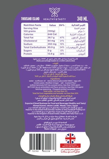 كن أول من يقيم “صوص ثاوزند آيلاند صحي – 340 مل”