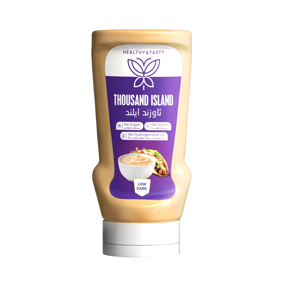 صوص ثاوزند آيلاند صحي بقوام كريمي ناعم وطعم متوازن يضيف نكهة غنية للبرجر والسلطات. خالي من السكر والنشا والزيوت المهدرجة، ومناسب للأطفال ومرضى السكري والضغط. أضفه الآن لوجباتك واستمتع بمذاق فاخر بطريقة صحية