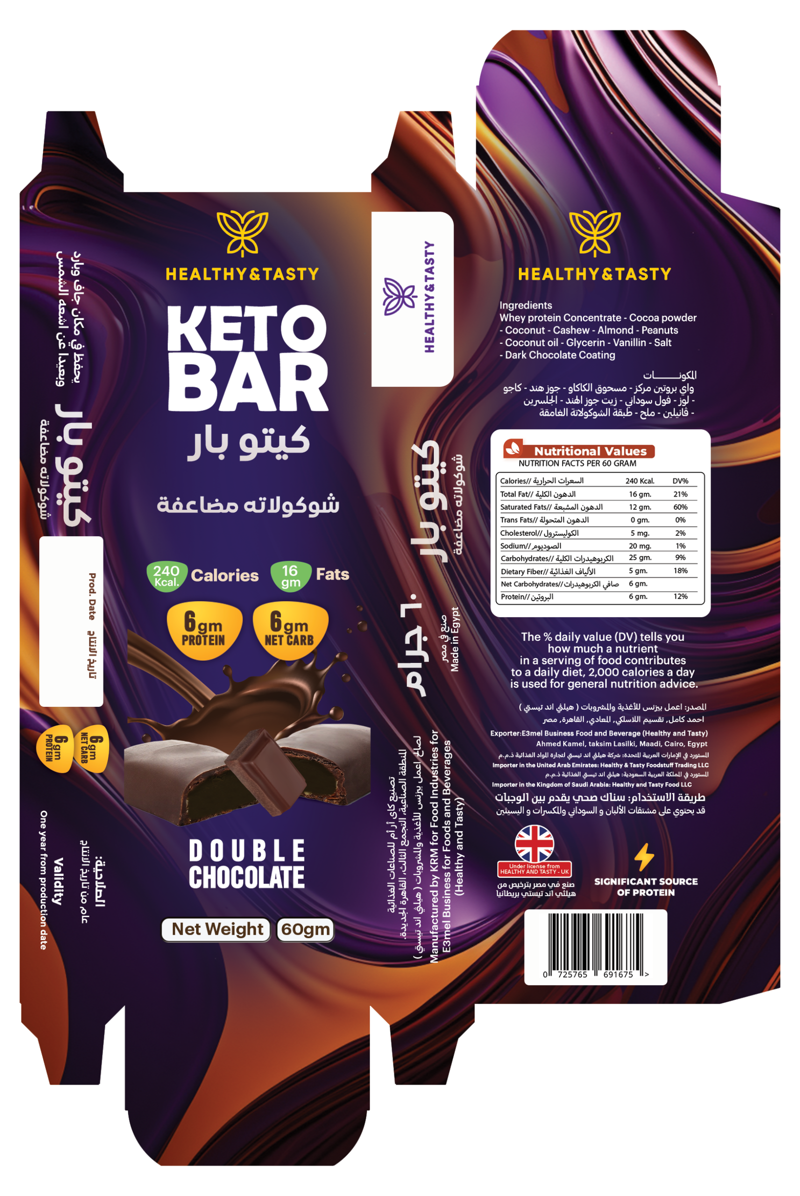 كيتو بار شوكولاتة مضاعفة من هيلثي اند تيستي | سناك كيتو دايت